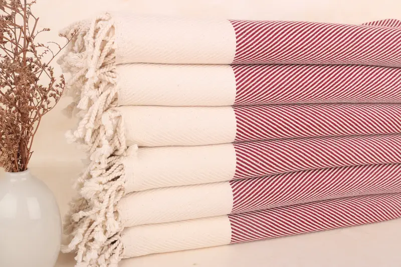 Personalisiertes türkisches Strandtuch mit burgunderroten Streifen, 40 x 71 Zoll