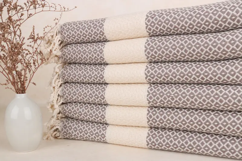 Personalisiertes geometrisches braunes Handtuch, Strandtuch, Beige, 40x71 Zoll