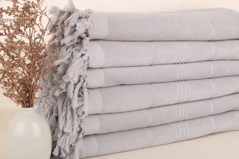 Gesticktes Strandtuch aus türkischer Baumwolle, hellgrau gestreift, 36 x 71 Zoll