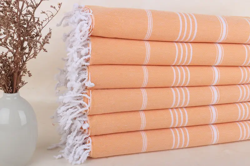 Türkisches Badetuch, hellorange gestreift, 101,6 x 180 cm, Bio-Baumwolle