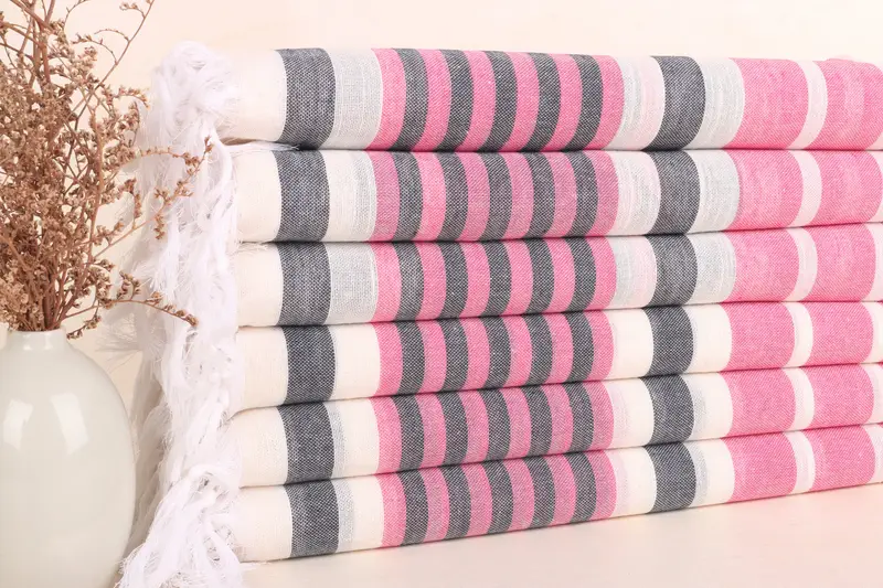 Personalisiertes rosa-schwarz gestreiftes Strandtuch aus Bio-Baumwolle, 40 x 67 Zoll