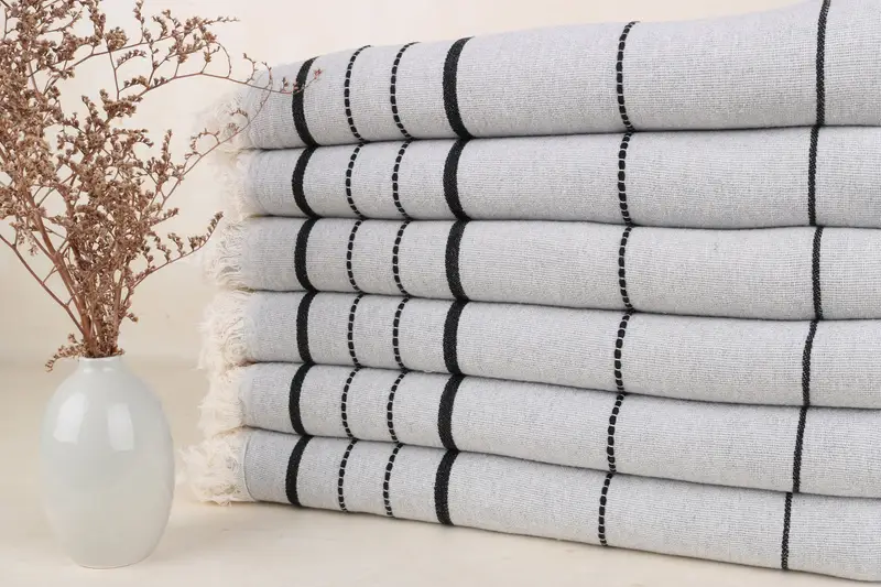 Personalisiertes türkisches Strandtuch, hellgrau-schwarz gestreift, 40 x 71 Zoll