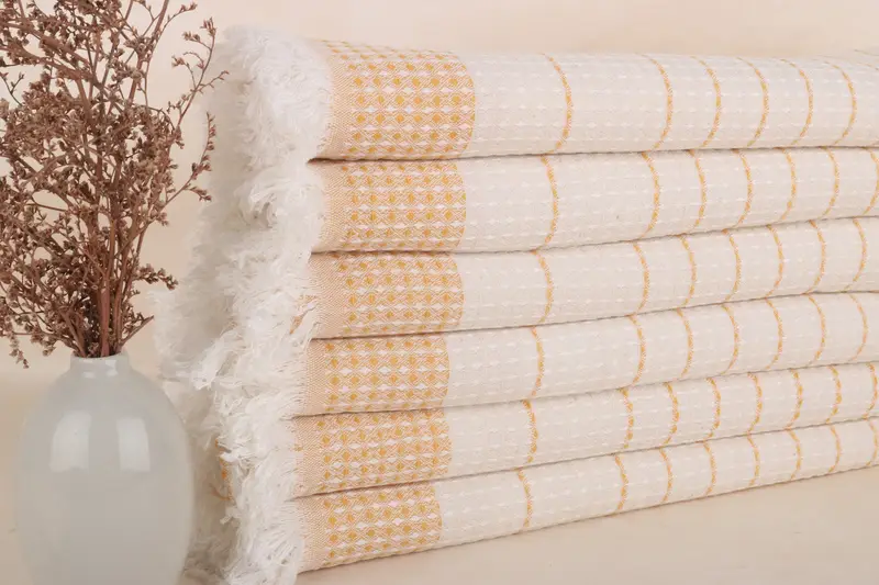 Strandtuch aus türkischer Baumwolle in Senfgelb mit Beige, 40 x 71 Zoll