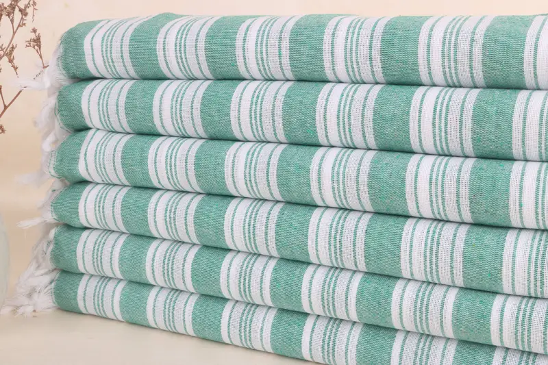 Gestreiftes Strandtuch aus Bio-Baumwolle, Beige, 40 x 71 Zoll
