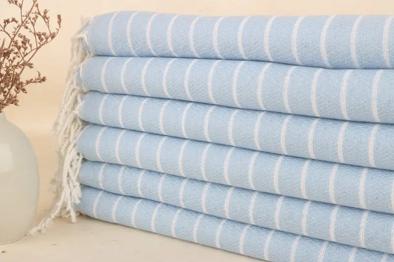 Hellblaues Baumwoll-Strandtuch gestreift, Bio, 40 x 71 Zoll