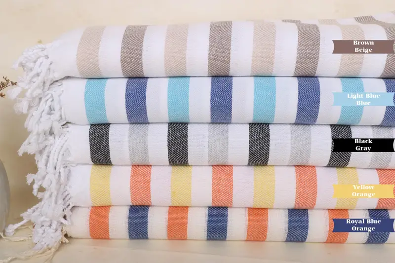 Gestreiftes Strandtuch aus türkischer Baumwolle, Bio-Beige, 40 x 71 Zoll