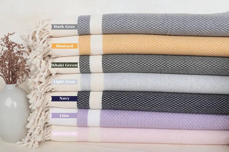 Strandtuch mit Monogramm, Baumwolle, gestreift, Beige, Bio, 40 x 71 Zoll