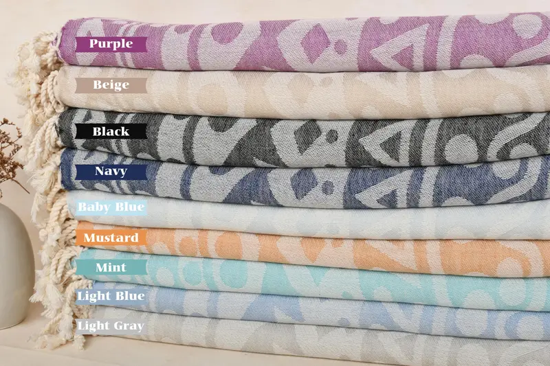 Strandtuch aus Bio-Baumwolle, beige, rundes Muster, 40 x 71 Zoll