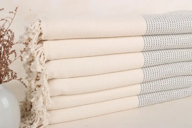 Dunkelgraues Strandtuch aus Bio-Baumwolle, Sekundärbeige, 40 x 71 Zoll