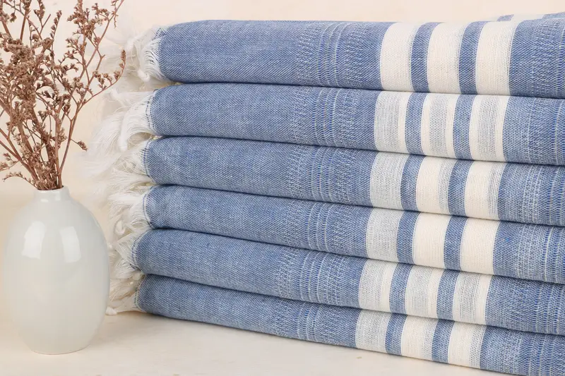 Gestreiftes Strandtuch aus türkischer Baumwolle, Marinebeige, 40 x 67 Zoll