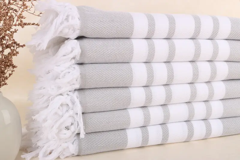 Benutzerdefiniertes Handtuch, besticktes hellgraues Chevron-Strandtuch, 36 x 67 Zoll