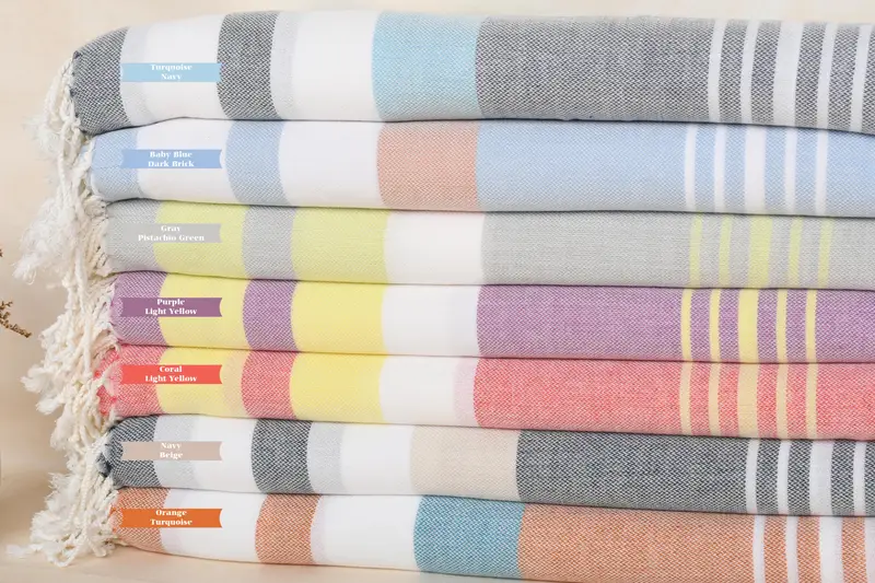 Maßgeschneidertes gestreiftes Strandtuch aus Bio-Baumwolle, Beige, 40 x 71 Zoll