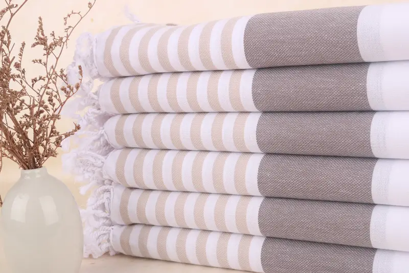 Strandtuch mit Monogramm, türkischer Baumwolle, braun-beige Streifen, 40 x 71 Zoll