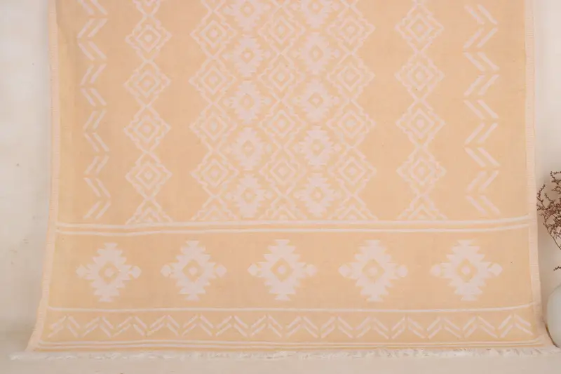 Personalisiertes senffarbenes Strandtuch aus Bio-Baumwolle, Beige, 40 x 71 Zoll