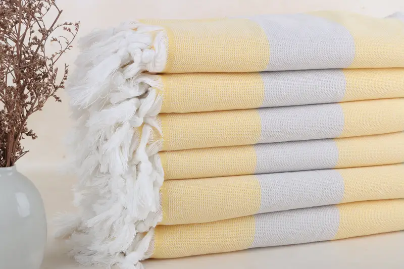 Personalisiertes gelb-beiges Frotteehandtuch, gestreift, 36 x 71 Zoll