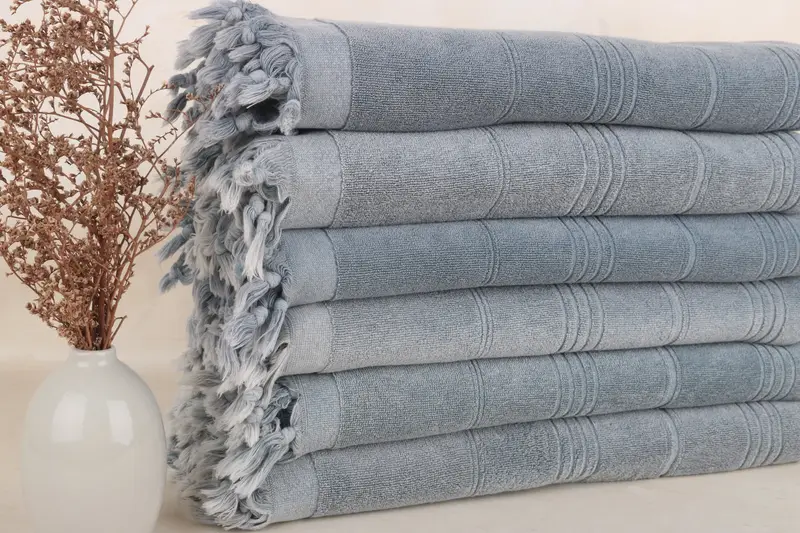 Türkisches Strandtuch, Stonewashed, grau gestreift, Frottee, 91,4 x 180,9 cm