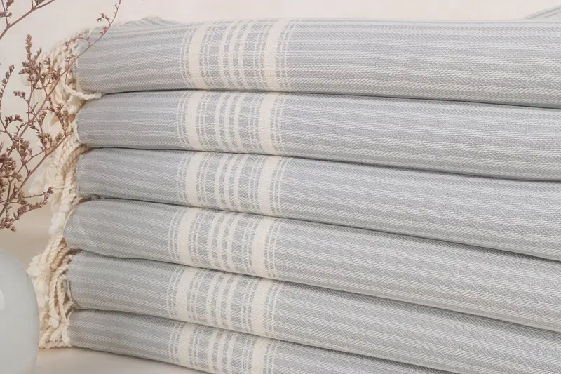 Grau gestreiftes Strandtuch aus Bio-Baumwolle, 38 x 67 Zoll