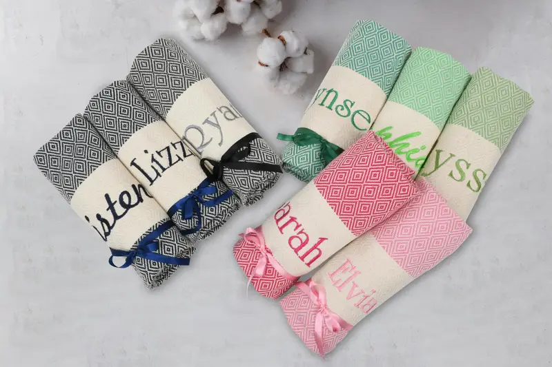 Personalisiertes türkisches Strandtuch, Bio-Baumwolle, Beige, 40 x 70 Zoll