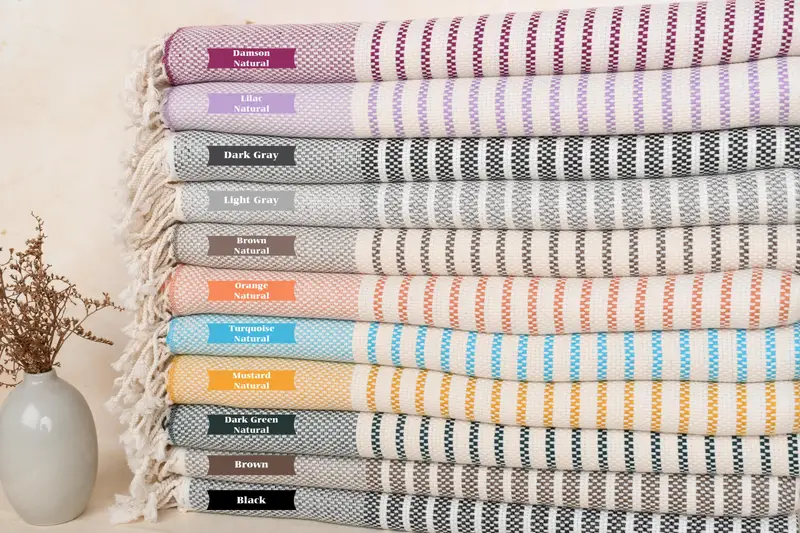 Strandtuch aus Bio-Baumwolle, gestreift, Beige, 40 x 75 Zoll