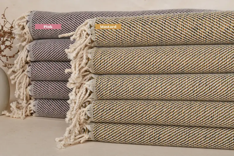 Maßgeschneidertes Strandtuch aus Bio-Baumwolle in Beige mit Chevron-Muster, 40 x 71 Zoll