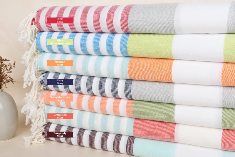 Gestreiftes Strandtuch aus türkischer Baumwolle, Beige, Bio-Baumwolle, 40 x 71 Zoll