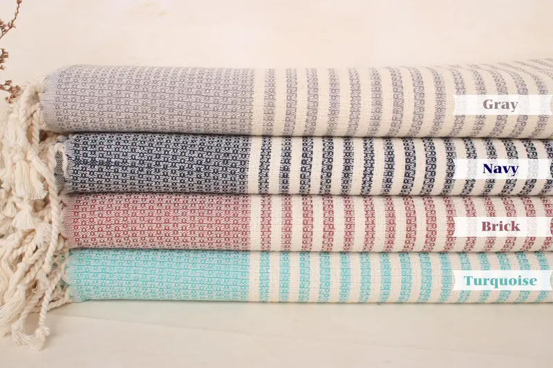 Bridal Shower Favours Gestreiftes Strandtuch aus Bio-Baumwolle, Beige, 40 x 67 Zoll