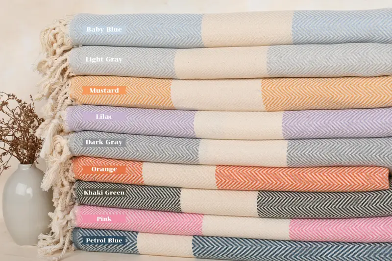 Türkisches Strandtuch aus Bio-Baumwolle, Fischgrätenmuster, Beige, 40 x 71 Zoll