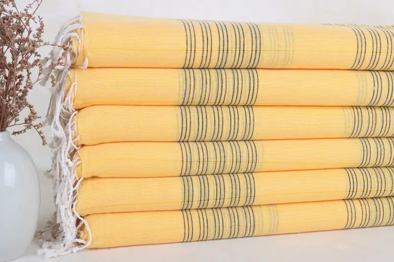 Diese Handtücher bestehen aus 100 % türkischer Bio-Baumwolle und zeichnen sich durch eine hervorragende Saugfähigkeit aus, die eine effiziente Wasseraufnahme und schnelle Trocknungszeiten gewährleistet. Diese Handtücher zeichnen sich durch ein Gewicht von 200 Gramm und eine Größe von 70 x 40 Zoll (100 x 180 cm) aus und werden sorgfältig handgewebt, wobei die Abmessungen geringfügigen Toleranzen von 1–2,5 cm unterliegen.