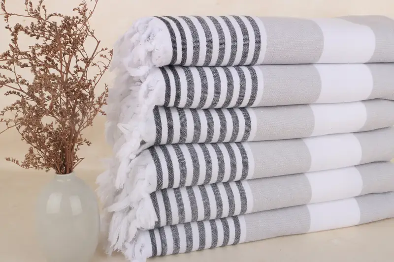Das türkische Badetuch ist aus 100 % türkischer Bio-Baumwolle gefertigt und sorgt für hervorragende Saugfähigkeit und Weichheit. Mit einem Gewicht von 400 Gramm und einer Größe von 90 x 170 cm (36 x 67 Zoll) mit einer Toleranz von 1–2,5 cm aufgrund der Handweberei bieten diese Handtücher eine Balance aus Zweckmäßigkeit und Eleganz. Es stehen individuelle Stickereien für Namen, Logos und Daten sowie vorgeschrumpfte Handtücher zur Verfügung, die vor dem ersten Gebrauch gewaschen werden sollten. Bestellungen werden innerhalb von 2–4 Tagen versandt...