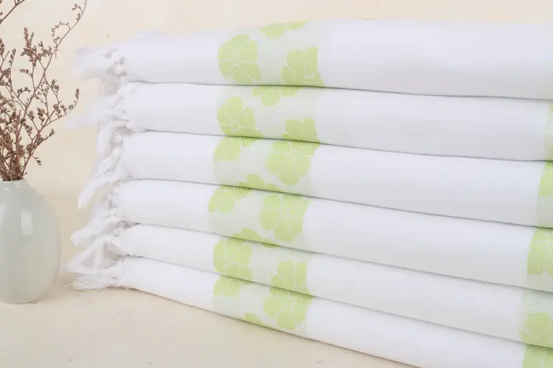 Türkische Handtücher werden aus 100 % türkischer Bio-Baumwolle gewebt und zeichnen sich durch ihre hervorragende Saugfähigkeit und schnell trocknenden Eigenschaften aus. Um optimalen Komfort zu gewährleisten, wiegen sie 300 Gramm und haben eine Größe von 100 x 180 cm (40 x 71 Zoll), wobei aufgrund ihrer handgefertigten Beschaffenheit eine Toleranz von bis zu 2,5 cm besteht. Handtücher werden vorgewaschen verschickt und sind sofort einsatzbereit.