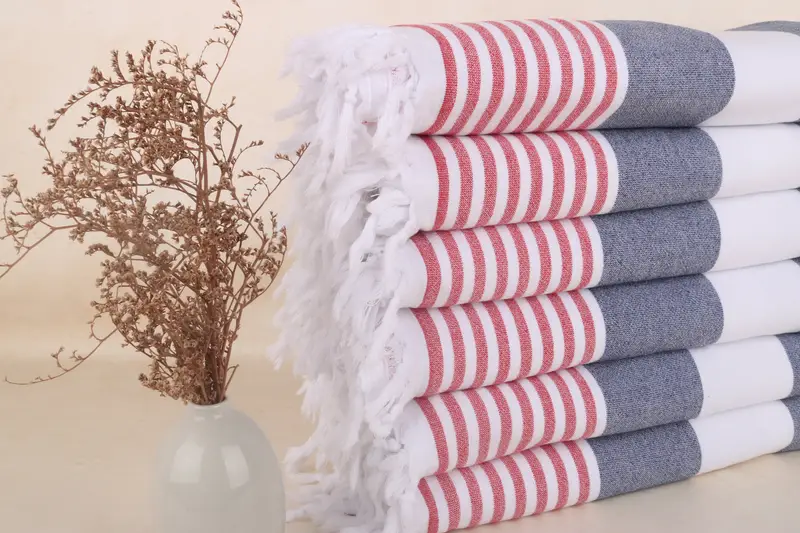 Türkische Handtücher, die für ihre Faserzusammensetzung bekannt sind, werden aus 100 % türkischer Bio-Baumwolle hergestellt und gewährleisten eine hervorragende Saugfähigkeit und Weichheit. Diese Handtücher haben eine Größe von 36 x 67 Zoll bzw. 90 x 170 cm und werden von Hand mit einer Toleranz von bis zu 1–2,5 cm gewebt, wodurch einzigartige, handwerkliche Stücke entstehen. Zu den Individualisierungsoptionen gehören Stickerei, Vorschrumpfwäsche und Versanddetails mit einer geschätzten Lieferzeit von 2–4 Tagen im Ausland und 3–5 Tagen im Inlan...