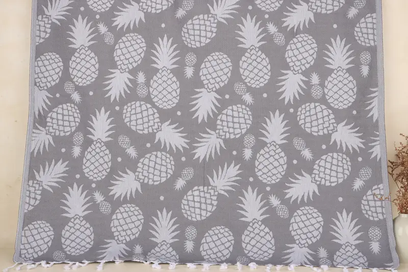 Das aus 100 % türkischer Bio-Baumwolle gefertigte Handtuch gewährleistet eine hohe Saugfähigkeit, was zu einer minimalen Feuchtigkeitsspeicherung nach dem Gebrauch führt. Jedes Handtuch misst 70 x 36 Zoll oder 90 x 180 cm und wiegt etwa 366 Gramm, mit leichten Abweichungen aufgrund seiner handgewebten Beschaffenheit. Bestellungen werden für individuelle Stickereien personalisiert und verfügen über einen vorgeschrumpften Status, sodass vor der Verwendung eine erste Wäsche erforderlich ist.
