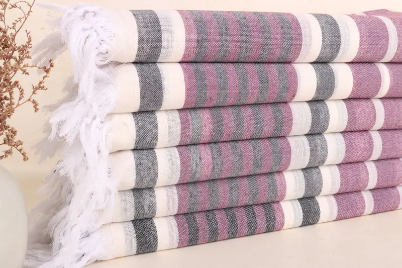 Die Handtücher bestehen zu 100 % aus türkischer Bio-Baumwolle und gewährleisten eine hervorragende Saugfähigkeit und eine weiche Textur, was zu einem leichten, schnell trocknenden Produkt führt. Die Handtücher werden auf Handwebstühlen mit den Maßen 67 x 40 Zoll oder 100 x 170 cm gewebt, mit leichten Abweichungen aufgrund des handwerklichen Prozesses. Jedes Handtuch wiegt 180 Gramm und bietet ein ausgewogenes Verhältnis von Haltbarkeit und Leichtigkeit.