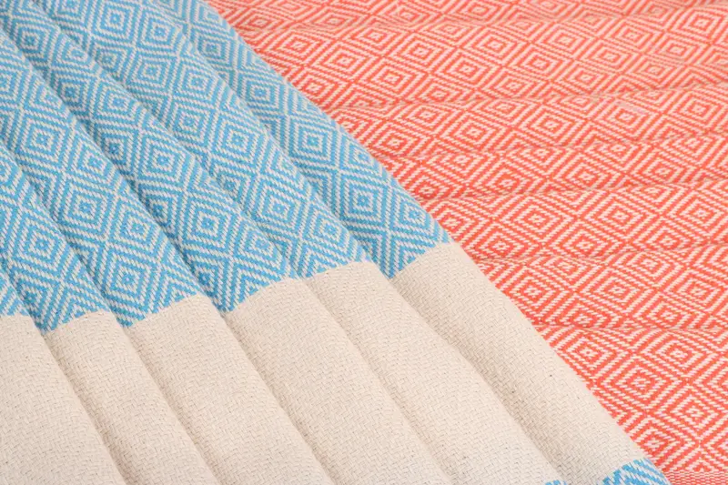 Diese aus 100 % türkischer Bio-Baumwolle gewebten Handtücher weisen eine hohe Saugfähigkeit und Komfort auf und sind somit ideal für verschiedene Verwendungszwecke. Das Ergebnis ist ein leichtes, platzsparendes und schnell trocknendes Produkt mit einem Gewicht zwischen 120 Gramm und 420 Gramm. Zu den Abmessungen gehören 40 x 70 Zoll (100 x 180 cm) oder 20 x 36 Zoll (50 x 90 cm), mit einer Toleranz von 1–2,5 cm aufgrund von Handwebtechniken.