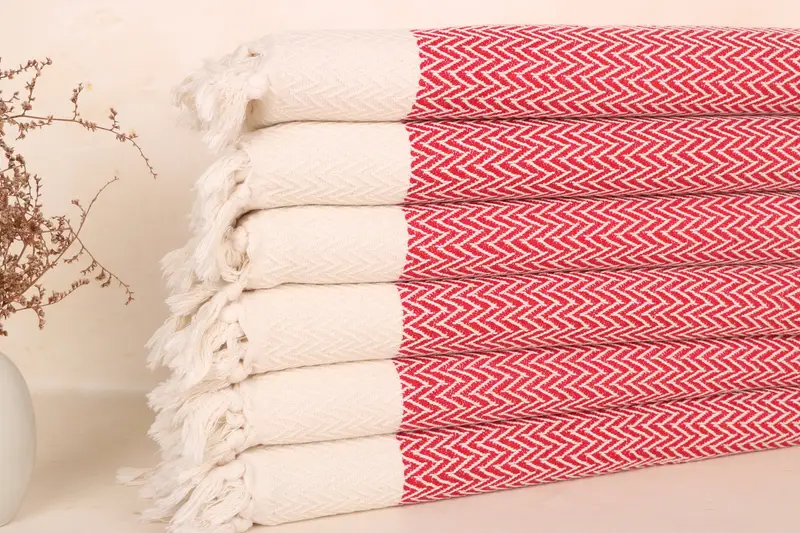 Türkische Handtücher sind aus 100 % türkischer Bio-Baumwolle gewebt und sorgen für hervorragende Weichheit und Saugfähigkeit. Jedes Handtuch misst 18 x 34 Zoll oder 45 x 85 cm und wiegt 120 Gramm. Aufgrund der handgefertigten Fertigung kann es zu Maßtoleranzen kommen.