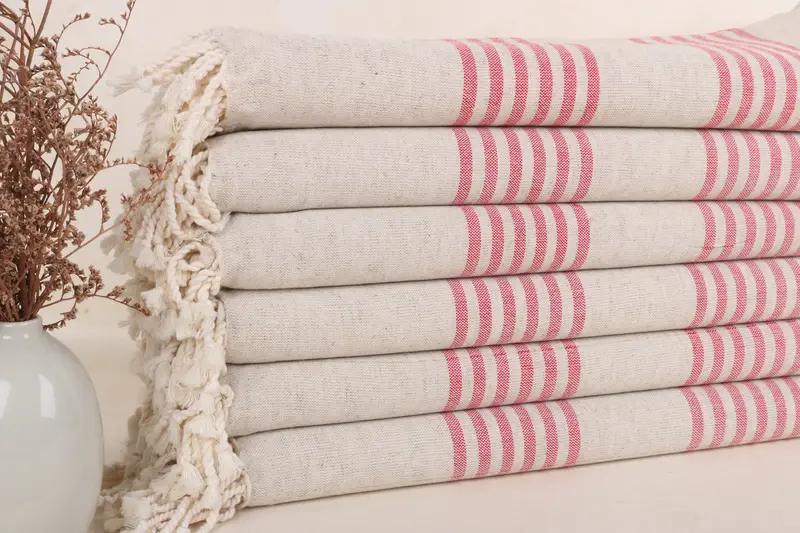 Das türkische Strandtuch zeichnet sich durch seine Faserzusammensetzung aus 100 % türkischer Bio-Baumwolle aus, die eine hohe Saugfähigkeit und Weichheit gewährleistet. Jedes Handtuch misst 40 x 71 Zoll oder 100 x 180 cm und wiegt 280 Gramm. Aufgrund des Handwebprozesses kann es zu geringfügigen Maßabweichungen von bis zu 1-2,5 cm kommen.
