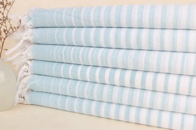 Türkisches Strandtuch, handgewebt aus Bio-Baumwolle, Weiß-Türkis, 40 x 69 Zoll