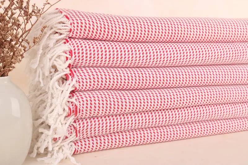 Personalisiertes Strandtuch aus türkischer Baumwolle, rot geometrisch, 40 x 67 Zoll