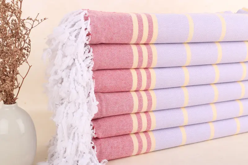 Benutzerdefiniertes türkisches Handtuch, rot-lila gestreiftes Handtuch, 36 x 71 Zoll