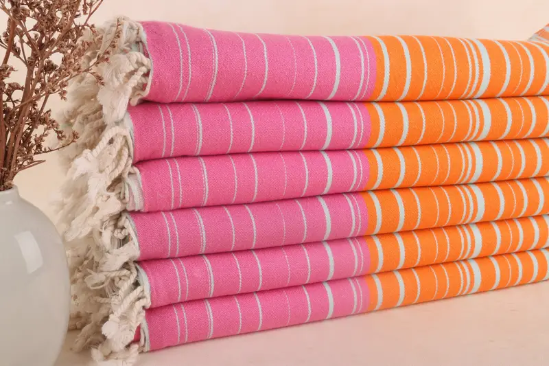 Personalisiertes orange-fuchsia gestreiftes Strandtuch, Bio-Baumwolle, 40 x 71 Zoll