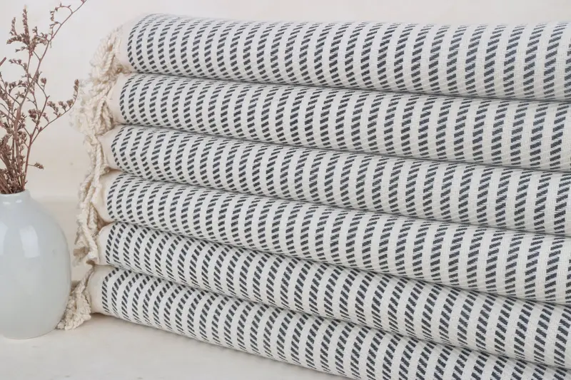 Monogrammiertes Strandtuch aus türkischer Baumwolle, dunkelgrau gepunktet, 40 x 71 Zoll