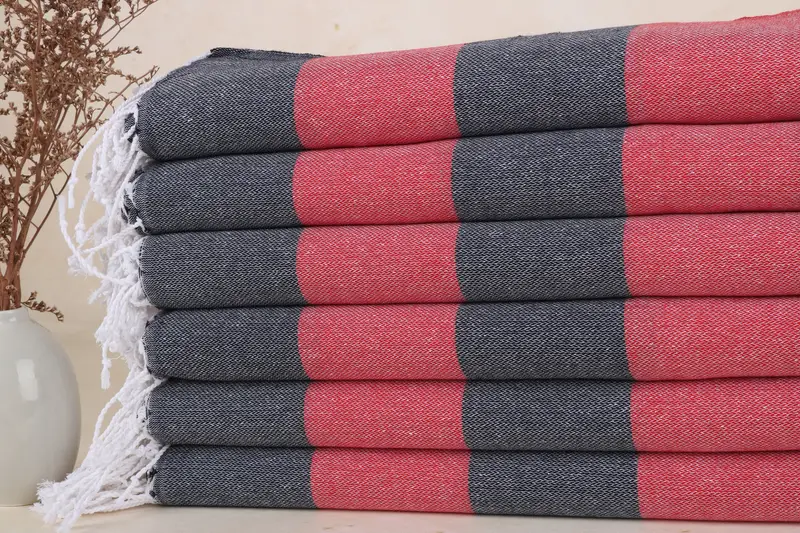 Personalisiertes türkisches Strandtuch aus schwarz-rot gestreifter Bio-Baumwolle, 40 x 71 Zoll