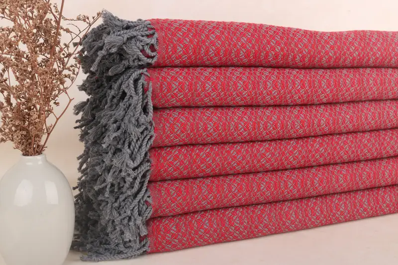 Individuelles türkisches Handtuch, Bio-Baumwolle, rot, geometrisch, 38 x 71 Zoll