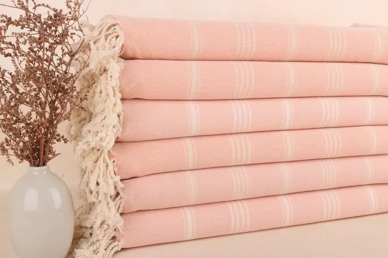 Personalisiertes Korallenhandtuch, gestreift, türkische Baumwolle, Beige, 40 x 71 Zoll