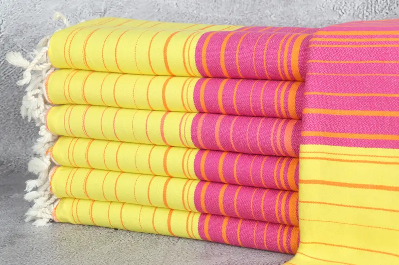 Türkisches Handtuch Orange-Fuchsia gestreift, Beige sekundär, 40 x 71 Zoll