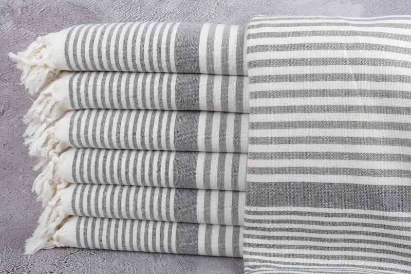 Bio-Strandtuch, khakigrün gestreiftes Pestemal, 40 x 67 Zoll