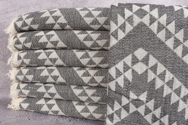 Türkisches Handtuch, geometrisches Beige, Bio-Baumwolle, 36 x 71 Zoll