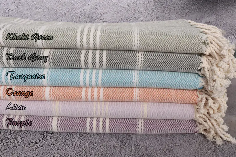 Gestreiftes türkisches Handtuch aus Bio-Baumwolle, Beige, 40 x 71 Zoll