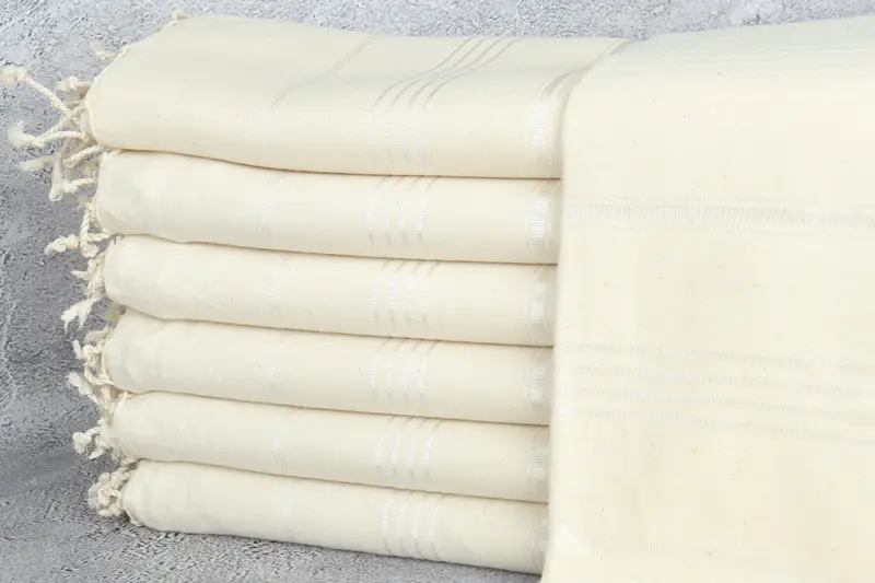 Strandtuch mit Monogramm, türkische Baumwolle, cremeweiß, gestreift, 40 x 71 Zoll