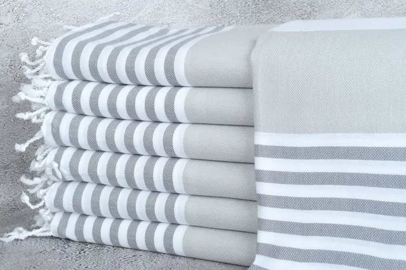 Personalisiertes Strandtuch aus türkischer Baumwolle, grau-dunkelgrau gestreift, 40 x 71 Zoll